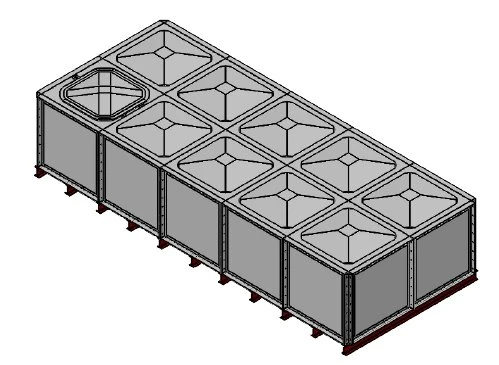 10000 Litre GRP Sectional Water Tank, a sectional tank with an internally flanged base and externally flanged sides. Modular construction utilising bolt together panels suitable for on-site assembly. Comes with man way access