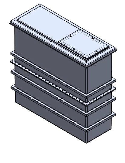 After the CFC free PU foam insulation and the steel reinforcement are fitted, the GRP outer skin is then applied. This ensures that both insulation and reinforcement are fully encapsulated and protected from external conditions. The whole tank is then coated with a tack free grey polyester gelcoat layer. This ensures that the tanks are suitable for all locations and weather conditions and can be located outdoors as standard. Where access is a limiting factor and our one piece GRP tanks are unsuitable a two piece tank could do the trick. These tanks are manufactured in two or more horizontally split sections which are then assembled once the restriction has passed. In a nutshell a one piece tank in two or more bolt together sections.