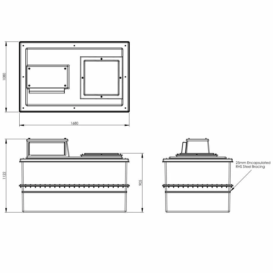 Manufactured to meet BS7491 Parts 1 and 2, using the highest quality GRP materials, ensuring a long service life with minimal maintenance requirements. Grey colour as standard (other RAL or BS colours are available at additional cost). Only materials of the highest quality are used along with a highly efficient manufacturing processes. This combination ensures that these tanks are of the highest quality available. All internal surfaces, including the lid, have an Isophthalic white gel coat layer which provides a clinical smooth surface which will not support the growth of microbiological organisms. This gel coat layer is reinforced by the main GRP laminate, which provides the main structure of the tank body. The materials used are of the highest quality and applied with exacting production standards to assist in prevention of osmotic blistering. Further reinforcement is provided by square section steel tubing with fully welded corner joints. Steel reinforcement ensures that the softening and general deterioration encountered with timber supports is avoided, thus providing full structural reinforcement for the life of the tank.