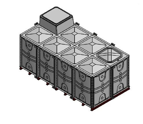 12000 Litre GRP Sectional Water Tank, a sectional tank with an internally flanged base and externally flanged sides. Modular construction utilising bolt together panels suitable for on-site assembly.