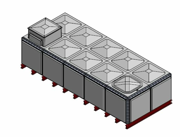 12733 Litre GRP Sectional Water Tank, a sectional tank with an internally flanged base and internally flanged sides. Modular construction utilising bolt together panels suitable for on-site assembly.