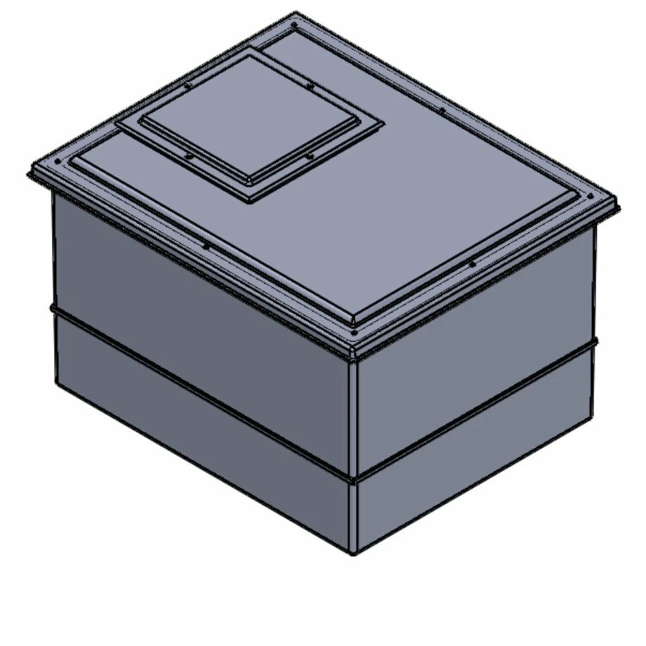 All internal surfaces, including the lid, have an Isophthalic white gel coat layer which provides a clinical smooth surface which will not support the growth of microbiological organisms. This gel coat layer is reinforced by the main GRP laminate, which provides the main structure of the tank body. The materials used are of the highest quality and applied with exacting production standards to assist in prevention of osmotic blistering. Further reinforcement is provided by square section steel tubing with fully welded corner joints. Steel reinforcement ensures that the softening and general deterioration encountered with timber supports is avoided, thus providing full structural reinforcement for the life of the tank. After the steel reinforcement is fitted, the GRP outer skin is then applied. This ensures that the reinforcement is fully encapsulated and protected from external conditions.