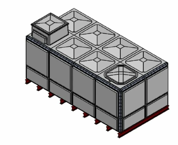 14722 Litre GRP Sectional Water Tank, a sectional tank with an internally flanged base and internally flanged sides. Modular construction utilising bolt together panels suitable for on-site assembly.