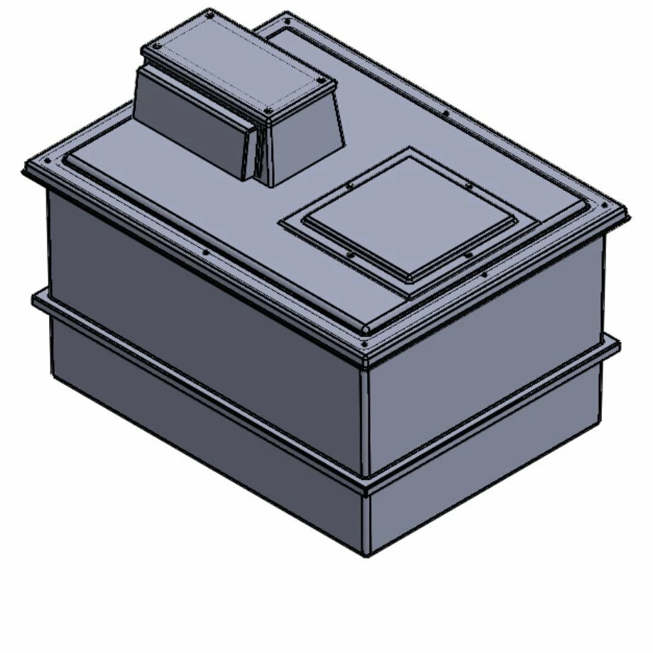 All internal surfaces, including the lid, have an Isophthalic white gel coat layer which provides a clinical smooth surface which will not support the growth of microbiological organisms. This gel coat layer is reinforced by the main GRP laminate, which provides the main structure of the tank body. The materials used are of the highest quality and applied with exacting production standards to assist in prevention of osmotic blistering. Further reinforcement is provided by square section steel tubing with fully welded corner joints. Steel reinforcement ensures that the softening and general deterioration encountered with timber supports is avoided, thus providing full structural reinforcement for the life of the tank.