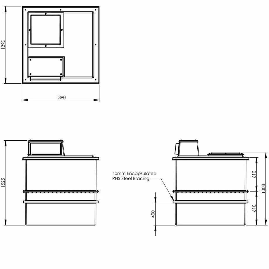 | Â External Dimensions (L x W x H) | Â 1390 x 1390 x 1600 mm |