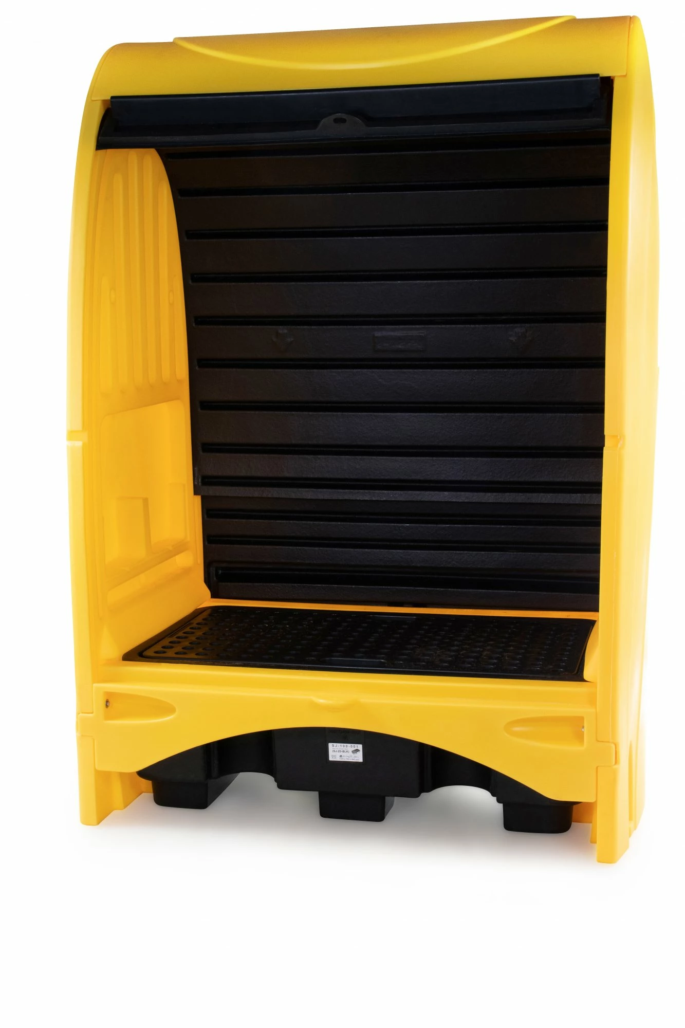 For the storage of chemicals, drum dispensing and hazardous waste collection. Tall headspace easily accommodates rotary pump equipment and conical funnels. Access to both sides – only one side at a time – via two, tough, flexible, ribbed, easy sliding shutters. Available with DIBt approved spill pallets. Fork liftable from both sides, whilst empty. 4 recessed external side pockets for bolting the unit to the ground (Bolts not supplied). Two side panels with 2 storage compartments each (2 clear plates supplied as standard). Can be padlocked using a long shackle type – 80 mm vertical clearance recommended. Suitable for use with Ramp and Block Set No 2 (not included).