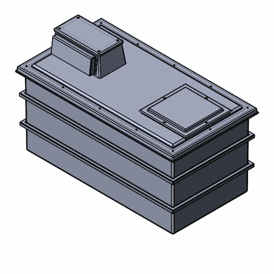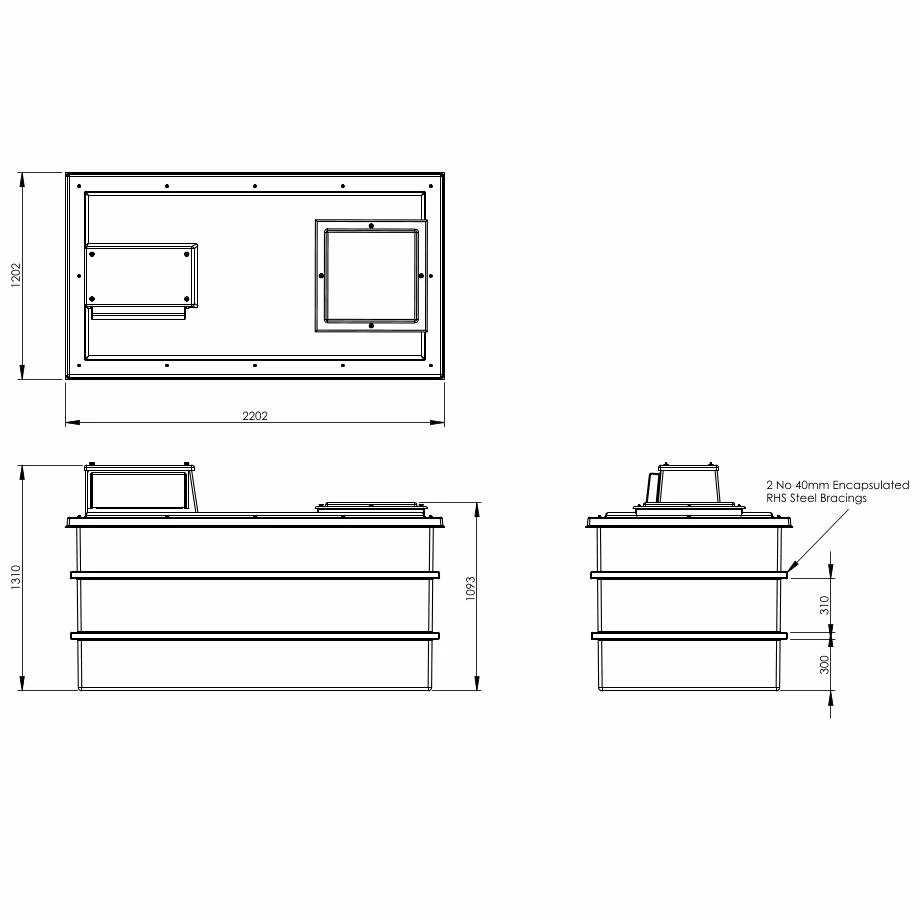 Only materials of the highest quality are used along with a highly efficient manufacturing processes. This combination ensures that these tanks are of the highest quality available. All internal surfaces, including the lid, have an Isophthalic white gel coat layer which provides a clinical smooth surface which will not support the growth of microbiological organisms. This gel coat layer is reinforced by the main GRP laminate, which provides the main structure of the tank body. The materials used are of the highest quality and applied with exacting production standards to assist in prevention of osmotic blistering. Further reinforcement is provided by square section steel tubing with fully welded corner joints. Steel reinforcement ensures that the softening and general deterioration encountered with timber supports is avoided, thus providing full structural reinforcement for the life of the tank.