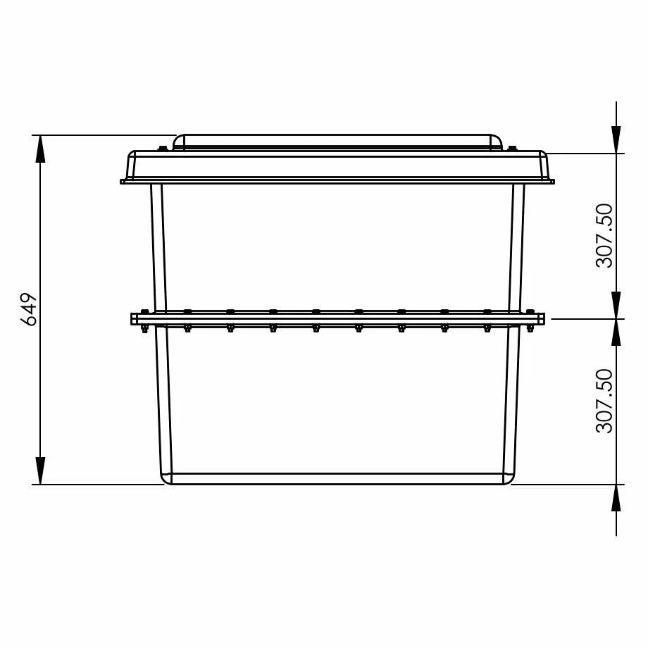 - 710 x 710 x 1050 mm (1000 mm clearance to underside)
