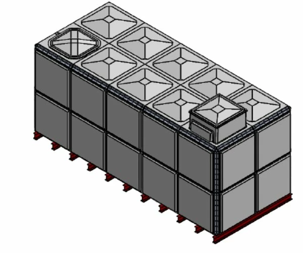 23805 Litre GRP Sectional Water Tank, a sectional tank with an internally flanged base and internally flanged sides. Modular construction utilising bolt together panels suitable for on-site assembly.