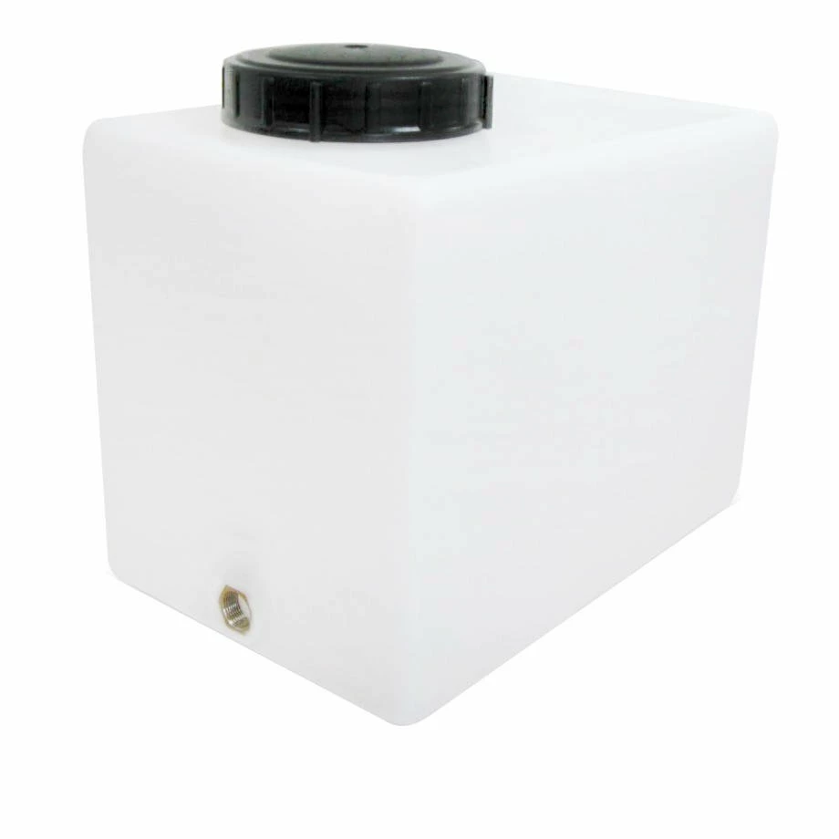 Our 36 Litre (7.9 gallon) Water tanks are suitable for storage and transportation of potable water and a wide range of other liquids. Std spec is natural translucent finish with 6″ sprung vented lid. This 36 litre water tank is manufactured in natural translucent medium density polyethylene with a 3/4″ Bsp outlet and a 6″ lid. Optional BSP outlets and positioning are available at an extra cost.