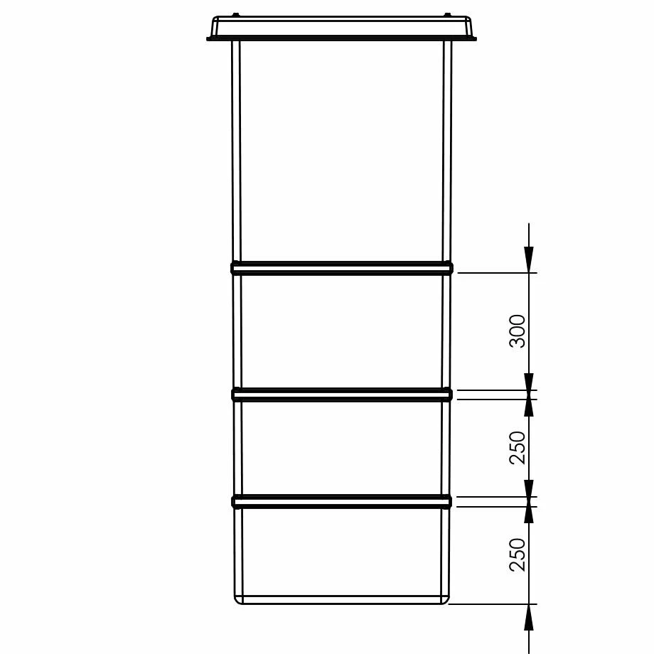 - 600 x 600 x 1050 mm (1000 mm clearance to underside)