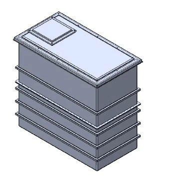 All internal surfaces, including the lid, have an Isophthalic white gel coat layer which provides a clinical smooth surface which will not support the growth of microbiological organisms. This gel coat layer is reinforced by the main GRP laminate, which provides the main structure of the tank body. The materials used are of the highest quality and applied with exacting production standards to assist in prevention of osmotic blistering. Further reinforcement is provided by square section steel tubing with fully welded corner joints. Steel reinforcement ensures that the softening and general deterioration encountered with timber supports is avoided, thus providing full structural reinforcement for the life of the tank. After the steel reinforcement is fitted, the GRP outer skin is then applied. This ensures that the reinforcement is fully encapsulated and protected from external conditions.