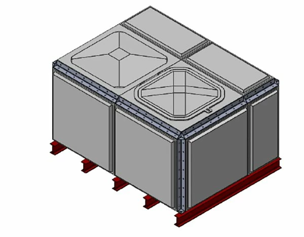 4079 Litre GRP Sectional Water Tank, a sectional tank with an internally flanged base and Internally flanged sides. Modular construction utilising bolt together panels suitable for on-site assembly.