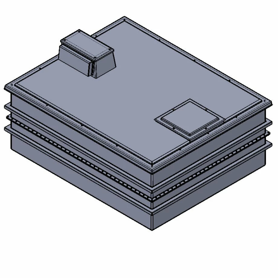 All internal surfaces, including the lid, have an Isophthalic white gel coat layer which provides a clinical smooth surface which will not support the growth of microbiological organisms. This gel coat layer is reinforced by the main GRP laminate, which provides the main structure of the tank body. The materials used are of the highest quality and applied with exacting production standards to assist in prevention of osmotic blistering. Further reinforcement is provided by square section steel tubing with fully welded corner joints. Steel reinforcement ensures that the softening and general deterioration encountered with timber supports is avoided, thus providing full structural reinforcement for the life of the tank.