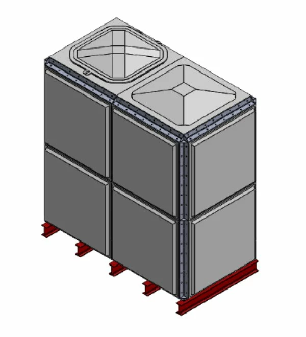 5315 Litre GRP Sectional Water Tank, a sectional tank with an internally flanged base and internally flanged sides. Modular construction utilising bolt together panels suitable for on-site assembly. Comes with man way access