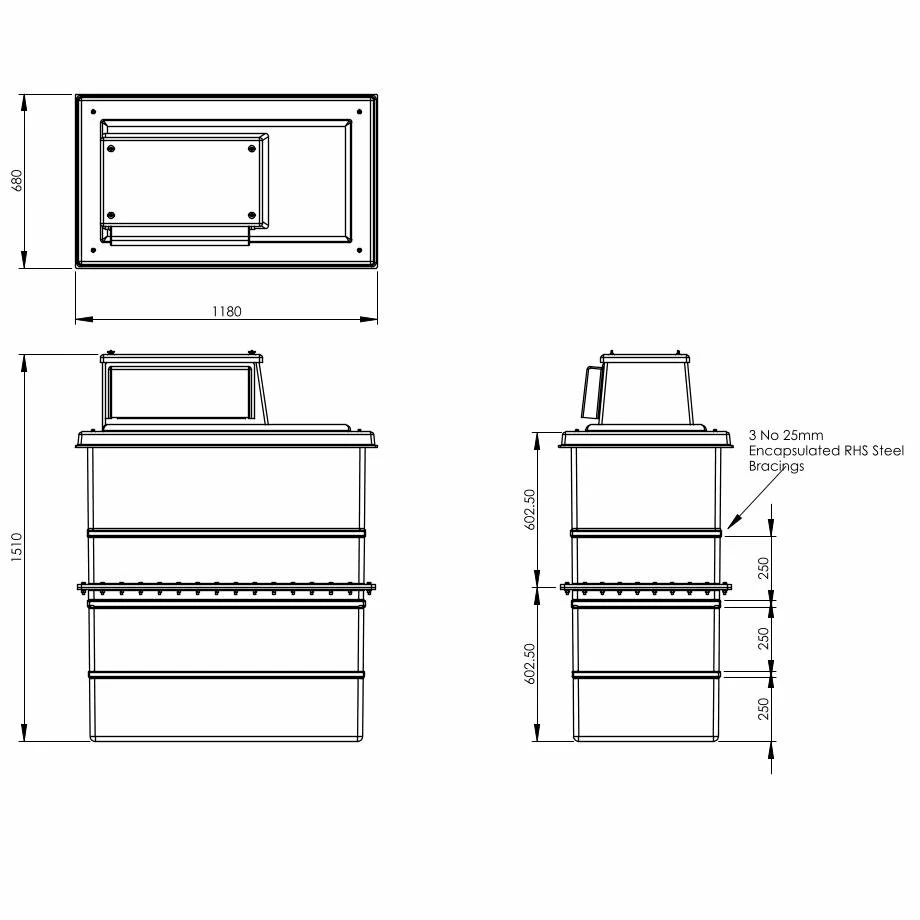 Tank comes with float valve housing to suit drop arm equilibrium float valves up to 35 mm. A float valve housing that is suitable for equilibrium drop arm float valves up to 54 mm is available as an optional extra. Manufactured to meet BS7491 Parts 1 and 2, using the highest quality GRP materials, ensuring a long service life with minimal maintenance requirements. Grey colour as standard (other RAL or BS colours are available at additional cost). Only materials of the highest quality are used along with a highly efficient manufacturing processes. This combination ensures that these tanks are of the highest quality available.