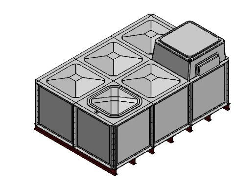 6000 Litre GRP Sectional Water Tank, a sectional tank with an internally flanged base and externally flanged sides. Modular construction utilising bolt together panels suitable for on-site assembly.