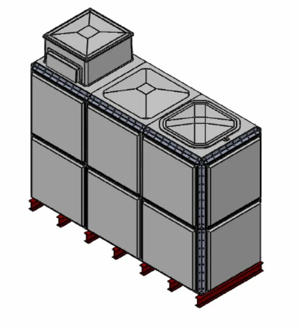 7788 Litre GRP Sectional Water Tank, a sectional tank with an internally flanged base and internally flanged sides. Modular construction utilising bolt together panels suitable for on-site assembly.