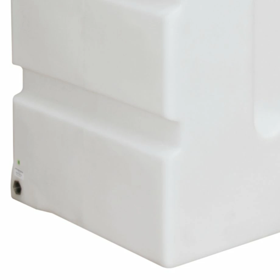 Our 800 Litre (175 gallon) Water tanks are suitable for storage and transportation of potable water and a wide range of other liquids. Capacity: 800 Litres. This baffled water tank is manufactured in natural translucent medium density polyethylene with a 1″BSP outlet and 8″ lid. Baffled water tanks are ideal for water transportation. The baffling is provided by the grooves / holes that go right through the tank – the ‘baffles’ stop the water sloshing from side to side. The Baffling reduces the movement of water in the tank during transport.