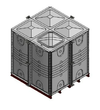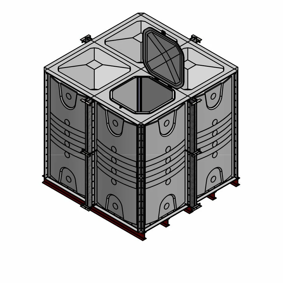 8000 Litre GRP Sectional Water Tank, a sectional tank with an internally flanged base and externally flanged sides. Modular construction utilising bolt together panels suitable for on-site assembly. Comes with man way access