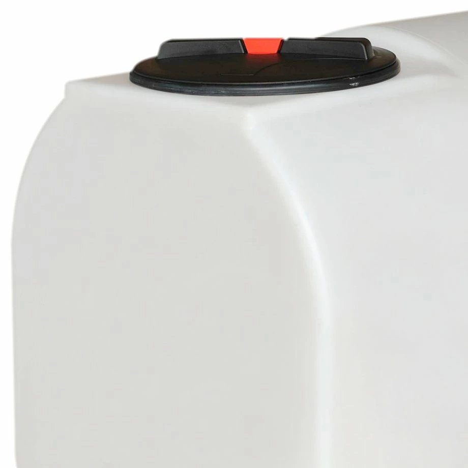 Our 900 litre Flat D-Shaped baffled water tank for the storage of potable water. This 900 Litre (238 gallon) D-Shaped flat baffled window cleaning / car valeting water storage tank is manufactured in natural translucent medium density polyethylene with a 1″ BSP outlet and large 16″ vented lid. Baffled water tanks are ideal for water transportation. The baffling is provided by the grooves / holes that go right through the tank – the ‘baffles’ stop the water sloshing from side to side. The Baffling reduces the movement of water in the tank during transport. Baffled water tanks are ideal for car valeters and car valeting. A high quality water storage tank for storing either potable or non potable water and a wide range of other liquids