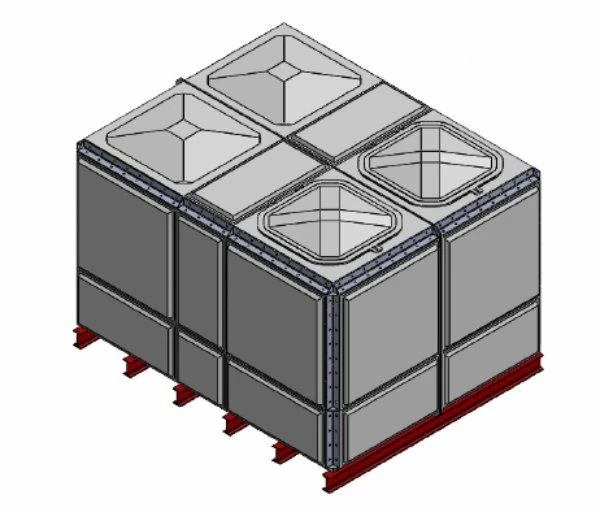 9400 Litre GRP Sectional Water Tank, a sectional tank with an internally flanged base and internally flanged sides. Modular construction utilising bolt together panels suitable for on-site assembly.