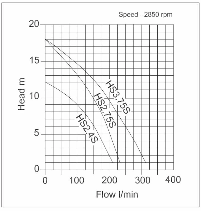 The HS series are 50 mm (2”) and 80 mm (3”) submersible pumps with motor sizes in 400watt and 750watt. The models HS2.75S and HS3.75S offer increased head and flow capability over the HS2.4S. All models have a solid cast aluminium body, cast iron pump casing and an impact resistant PVC strainer base for durability during robust handling. The urethane vortex impeller offers excellent wear resistance in site applications where the water contains sand and silt in suspension, thus maintaining performance and reliability. The 750watt pumps feature an oil lifter to maintain seal lubrication during operation in any position.