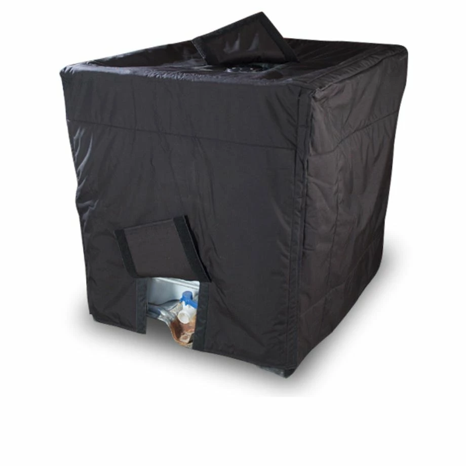The IBC Deluxe insulated cover is designed to insulate and maintaining temperature inside an intermediate bulk container (IBC). This IBC – Tote cover is for insulating a standard 1000 litre container. The deluxe cover is designed in durable cordura material with Teflon coating, making this cover resistant to chemicals and has a high degree of water repellence. The insulation cover is a full size cover with a lid and equipped with Velcro pads, which makes it very easy to attach or detach to a container. Furthermore, there are strategically placed Velcro pads to access the natural openings on the IBC container.