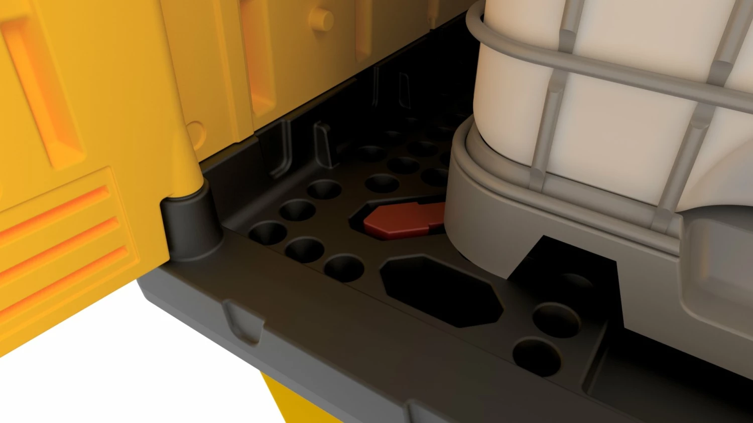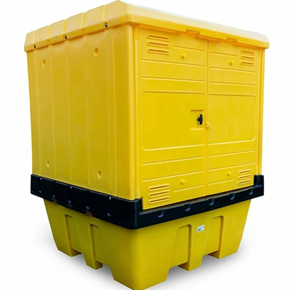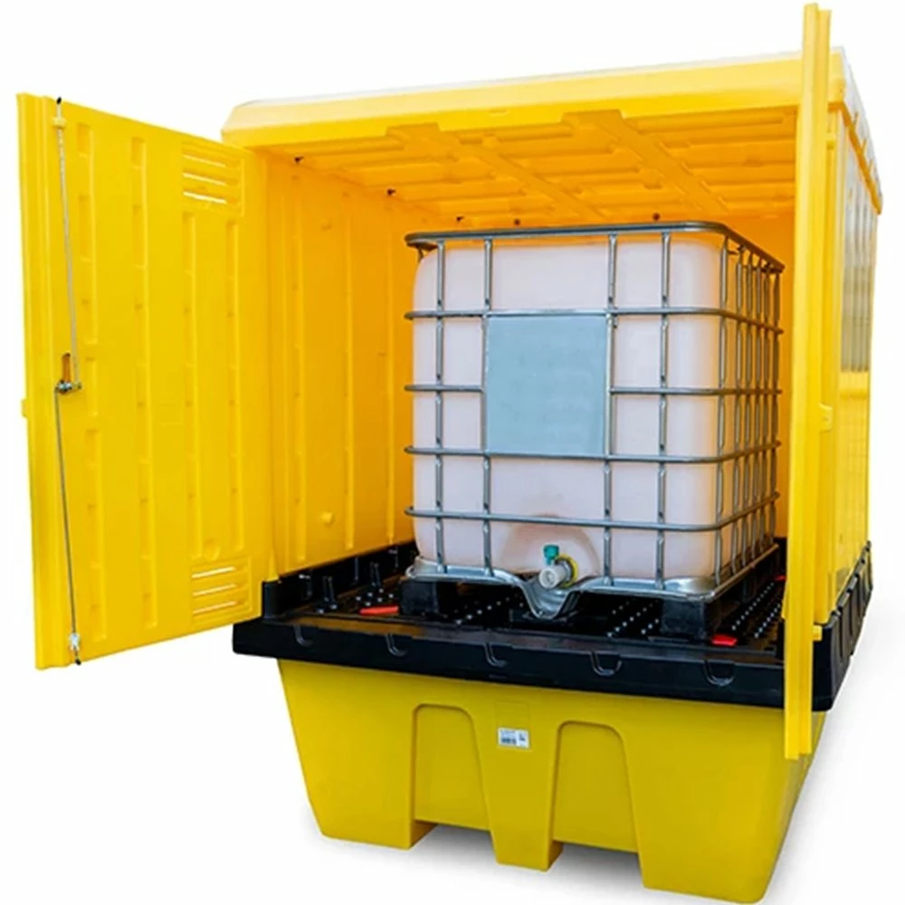 A nestable IBC spill pallet with a weathertight Hard cover. Â