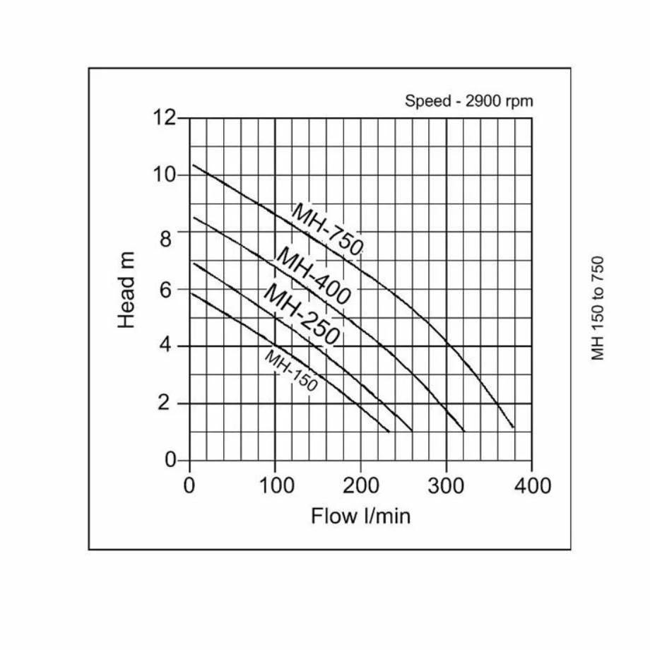 The MH series of pumps are designed for circulation in ponds, feeding waterfalls and creating water features. All models are compact, yet powerful, however, the MH-150 and MH-250 are principally suited to the pre-formed pool or small pond. The larger models are better suited to the more significant moving water project, lake or large pond. The non-clog impeller can deal easily with fish waste, vegetation, soft solids etc up to a size of 6 mm.