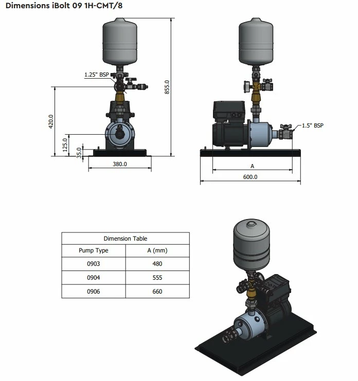 Stuart Turner Aquaboost iBolt Horizontal single Booster Pump 0906Â 1H-CMT/8 130 L/MIN @ 5.4 BAR