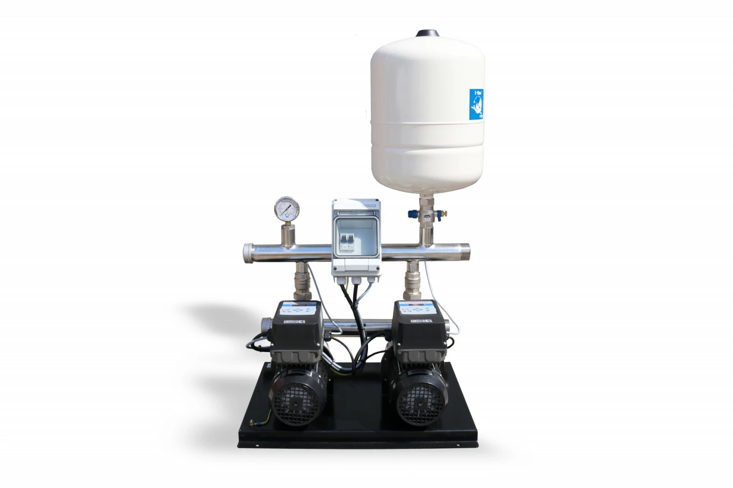 Aquaboost iBolt range of Twin pump 03 booster sets are capable of delivering flow rates up to 5.0m³/ hour and can produce head pressures of up to 9.0 bar. Not only does the Aquaboost iBolt 03 range feature two horizontal multistage pumps, it is also controlled by an air-cooled variable speed frequency invertors which are mounted directly onto the pump motor.