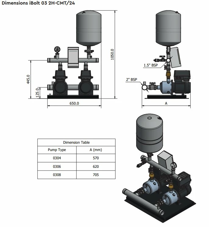 Aquaboost iBolt range of Twin pump 03 booster sets are capable of delivering flow rates up to 5.0m³/ hour and can produce head pressures of up to 9.0 bar. Not only does the Aquaboost iBolt 03 range feature two horizontal multistage pumps, it is also controlled by an air-cooled variable speed frequency invertors which are mounted directly onto the pump motor.